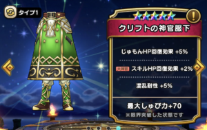 DQWの【クリフトの神官服下】の性能や習得スキルなどを紹介しています。【クリフトの神官服下】がおすすめの職業など、参考にしてみてください。